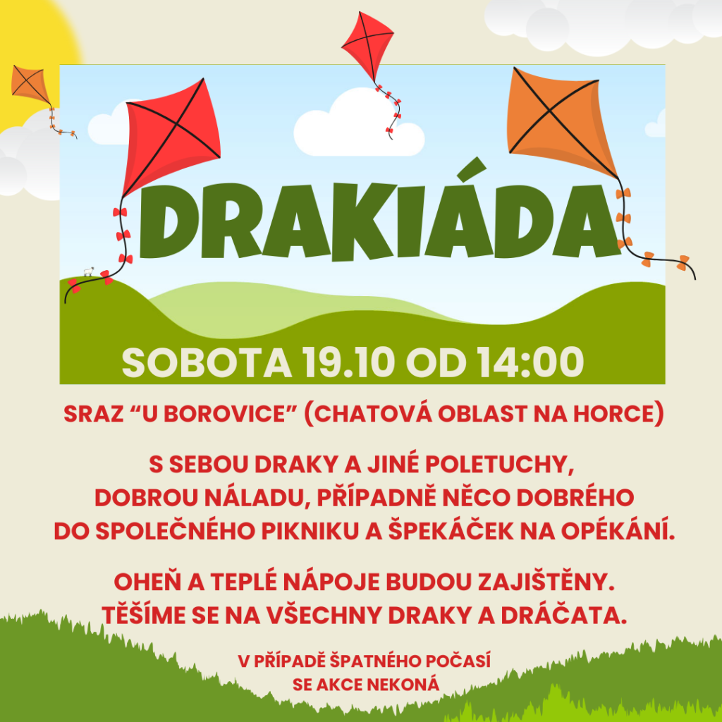 KDY: sobota 19.10. od 14:00 hodin KDE: chatová oblast nad Březinou, "u borovice"